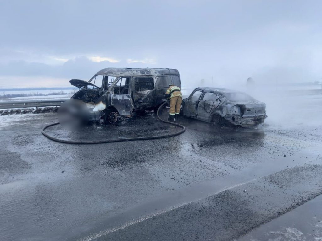 Пожар мгновенно охватил оба автомобиля.