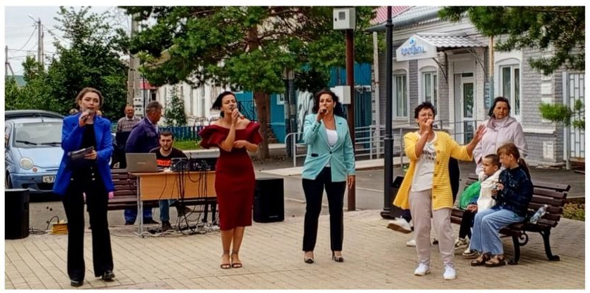 Эстафетную палочку у коллег приняли самодеятельные артисты из поселка Пристанционный. Они подготовили и провели развлекательную программу «Песни о главном» на площадке проекта, у фонтана в райцентре.