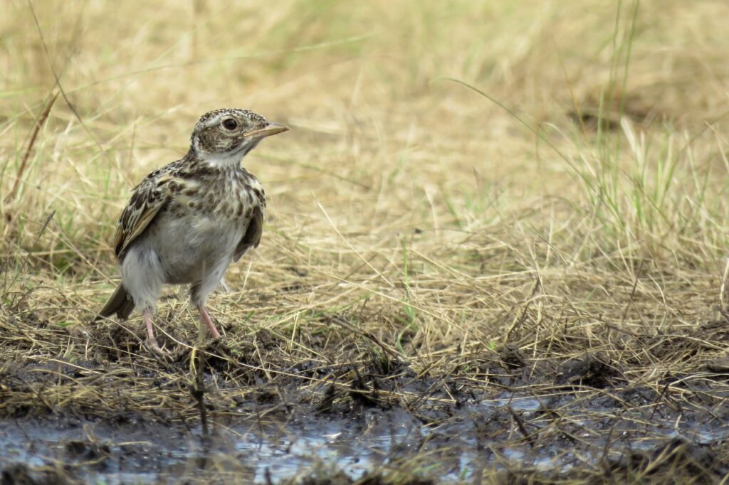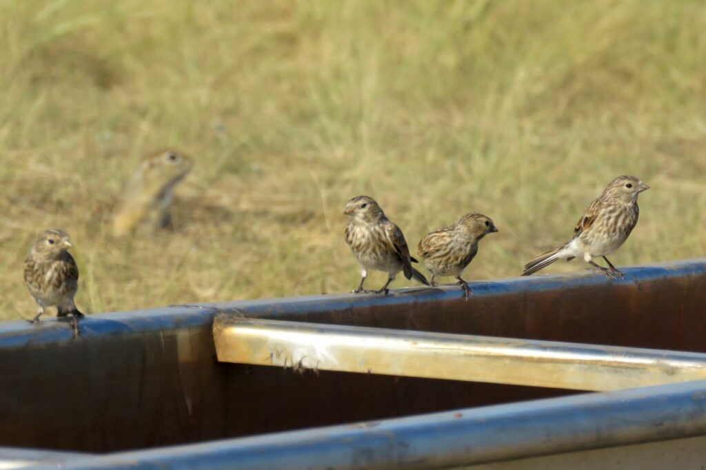 Короткая передышка от жары собрала десятки пернатых и даже грызунов. Настоящим украшением птичьего базара стали горные чечётки — крайне скрытные птицы, которых редко можно увидеть на открытых пространствах. По соседству полевые жаворонки оживлённо чистили перья и потягивали воду, а деревенские ласточки, уже выкормив первый выводок, готовились к следующему — собирали строительный материал для гнёзд.