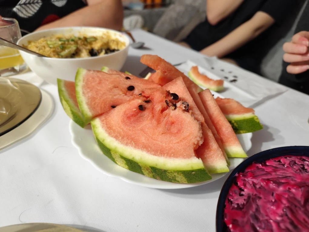 Многие пророчили, что сохранить арбуз до Нового года не получится. Предрекали, что даже если он снаружи будет выглядеть хорошо, внутри окажется гнилым. Но праздник все же удался — арбузная корочка аппетитно хрустела под ножом, когда ягоду торжественно резали. А аромат свежего арбуза моментально окутал весь дом, приятно порадовав всех, кто присутствовал на этом празднике.